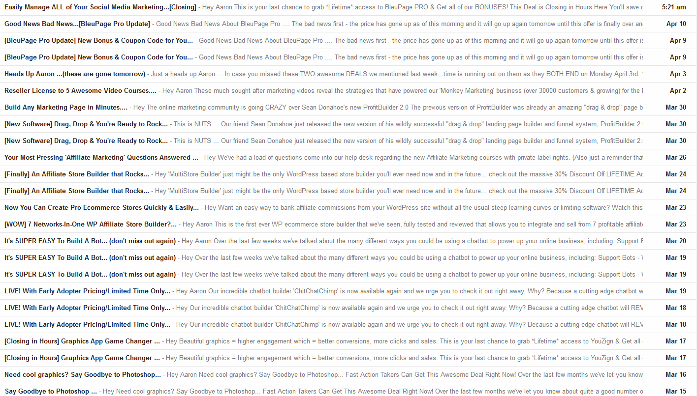 These emails will NEVER stop coming at me or you for that matter because those emails make them money... Money as an affiliate and money as a product creator ...and people never stop buying because these guys know how to write emails that sell.